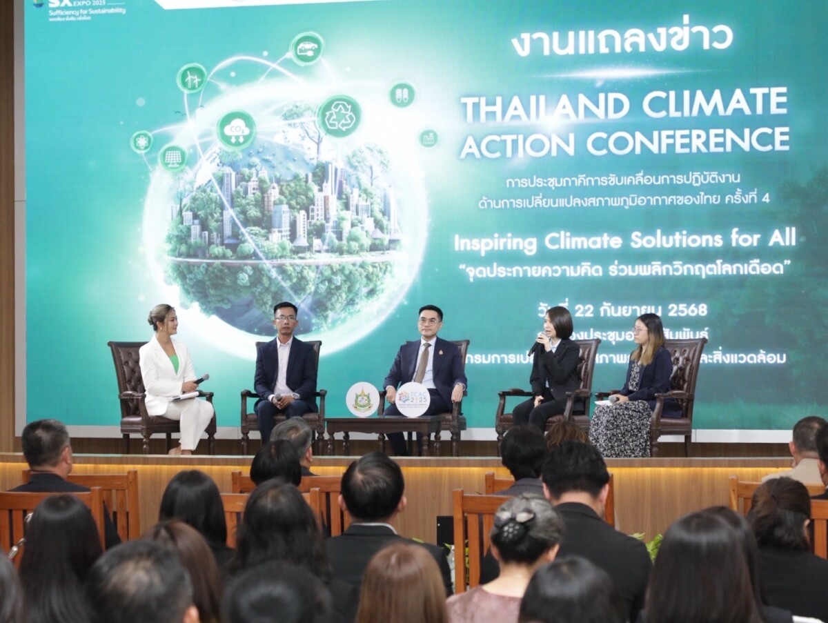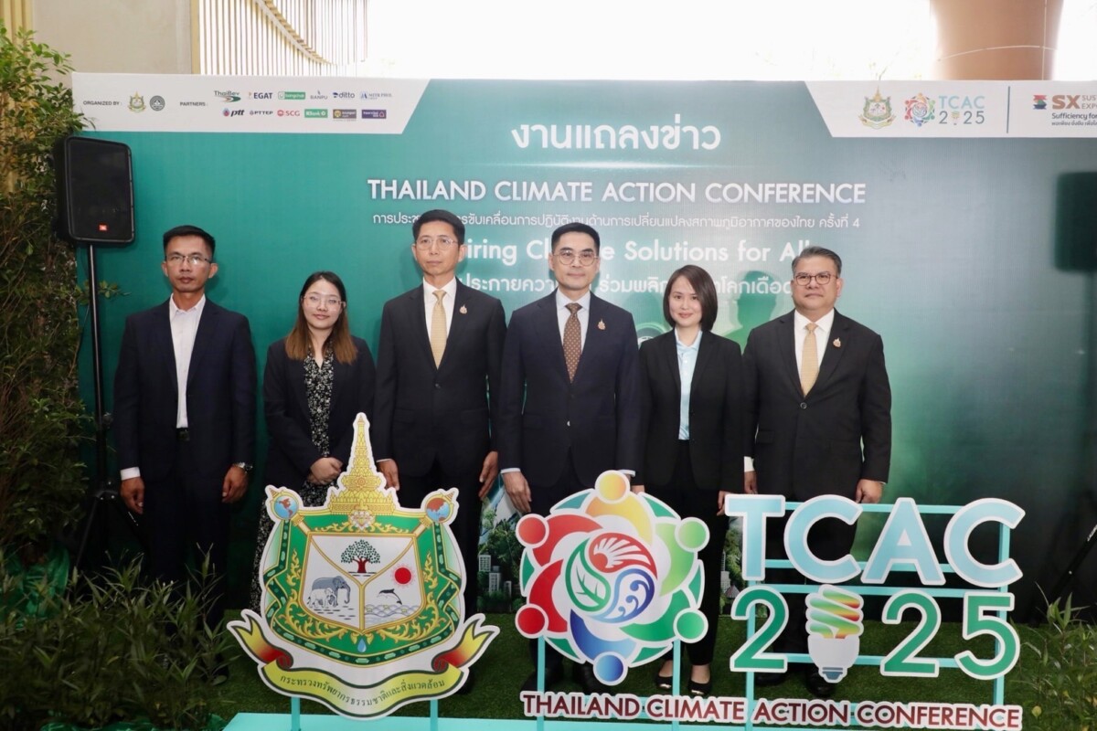 วันจันทร์ที่ 22 กันยายน 2568 กระทรวงทรัพยากรธรรมชาติและสิ่งแวดล้อม และภาคีเครือข่าย แถลงข่าวการจัดประชุมภาคีการขับเคลื่อนการปฏิบัติงานด้านการเปลี่ยนแปลงสภาพภูมิอากาศของไทย ครั้งที่ 4 หรือ Thailand Climate Action Conference: TCAC 2025 ภายใต้แนวคิด “จุดประกายความคิด ร่วมพลิกวิกฤตโลกเดือด (Inspiring Climate Solutions for All)” โดยได้รับเกียรติจาก ดร.พิรุณ สัยยะสิทธิ์พานิช อธิบดีกรมการเปลี่ยนแปลงสภาพภูมิอากาศและสิ่งแวดล้อม ประธานแถลงข่าว ร่วมกับ ดร.นภัส พันธ์พงษ์เจริญ กรรมการผู้จัดการ บริษัทซัสเทนอะบิลิตี้ เอ็กซ์โป จำกัด ดร.บุญทวี บุญให้ ผู้อำนวยการโรงเรียนสาธิตเทศบาลบ้านหัวหิน จังหวัดประจวบคีรีขันธ์ และคุณกานต์รวี ศรีแสงทรัพย์ แกนนำเยาวชน โครงการ Local Conference of Youth (LCOY) Thailand ณ อาคารกรมการเปลี่ยนแปลงสภาพภูมิอากาศและสิ่งแวดล้อม กรุงเทพฯ